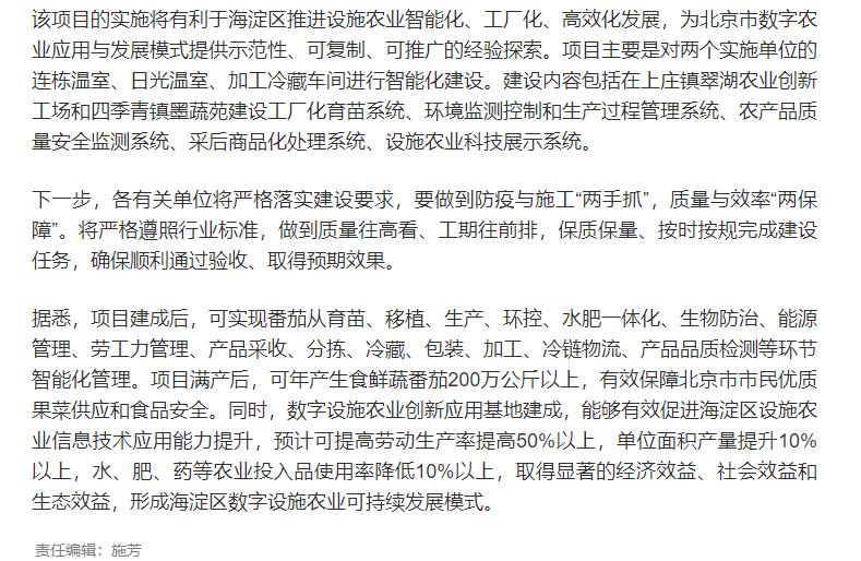 海淀區(qū)啟動國家數字農業(yè)創(chuàng)新應用基地建設項目 -國研咨詢助力該項目順利實施